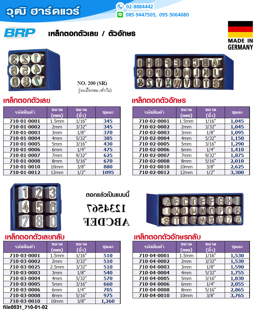 | 710-03-0001 | BRP เหล็กตอกตัวเลขกลับ 1.5mm |