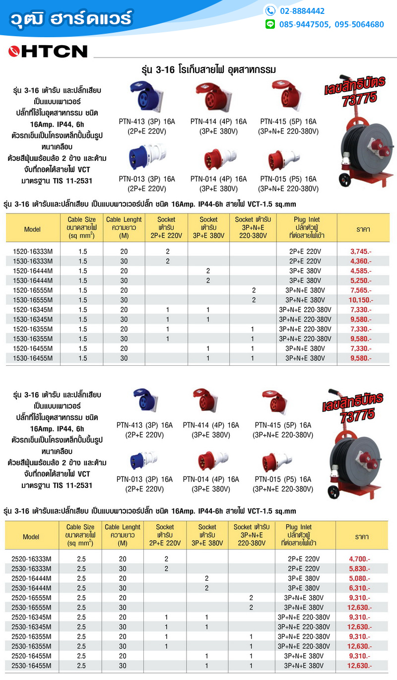 1520-16444M ล้อเก็บสายไฟ 16A 1.5x20M 3P+E 380V |