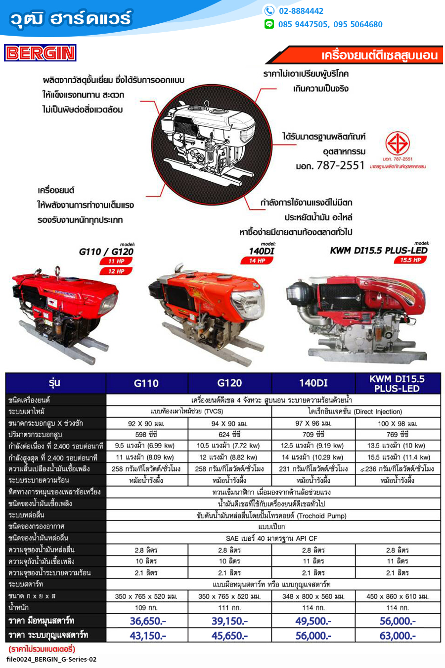 G-120 | BERGIN G-120 เครื่องยนต์ดีเซล 12HP (มือหมุน) |