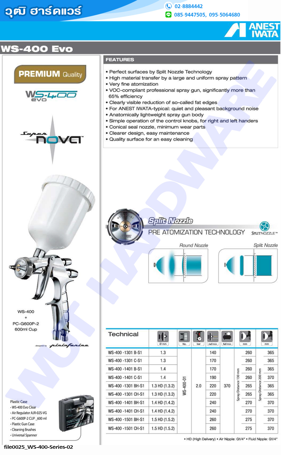 WS-400-1301B-S1 IWATA WS-400-1301B-S1 ปืนพ่นสี 1.3mm (ไม่รวมกา)