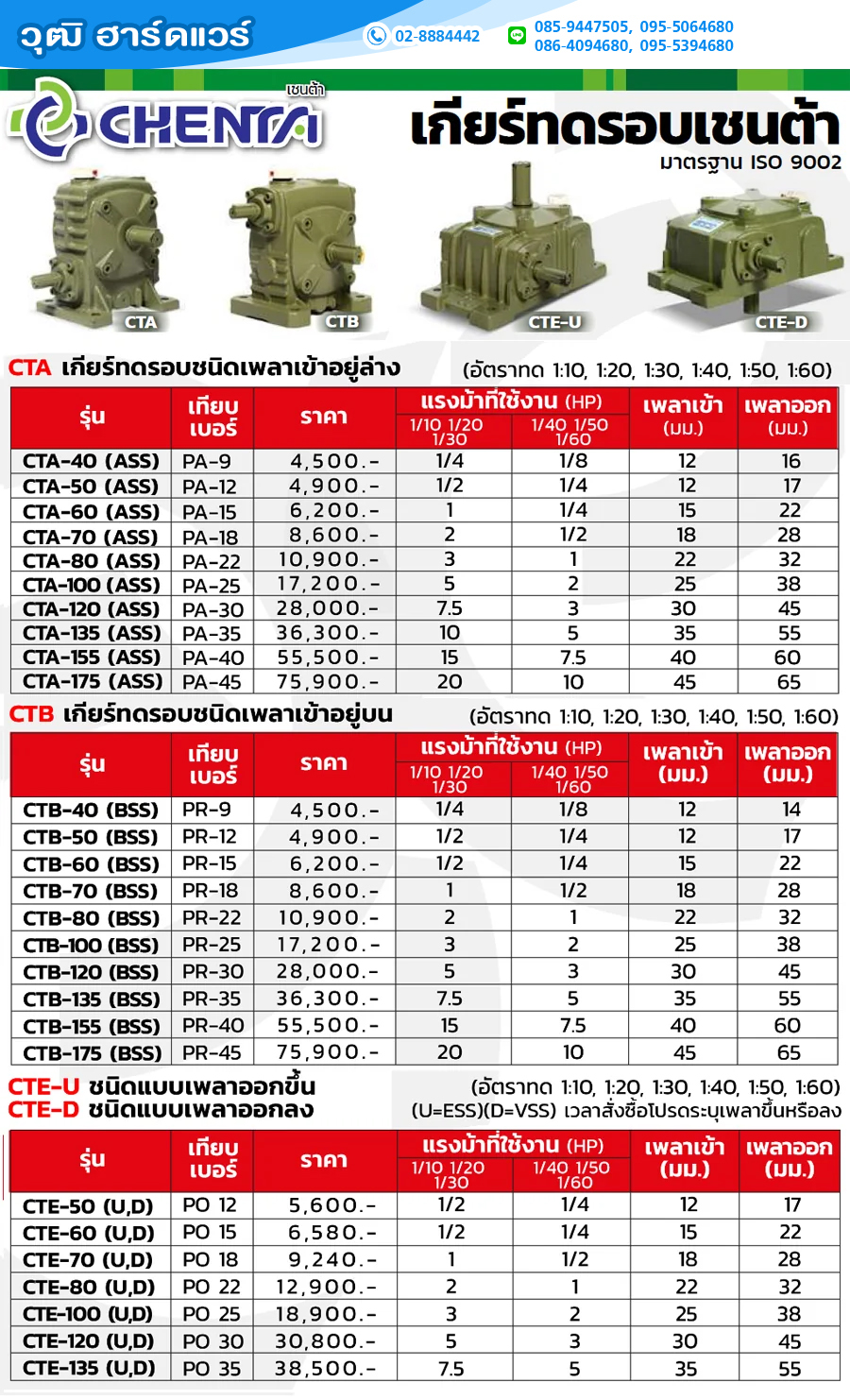 CTE-D-60 CHENTA เกียร์ทดรอบ CTE-D-60 (PO-15) 1:xx ลูก 6,580