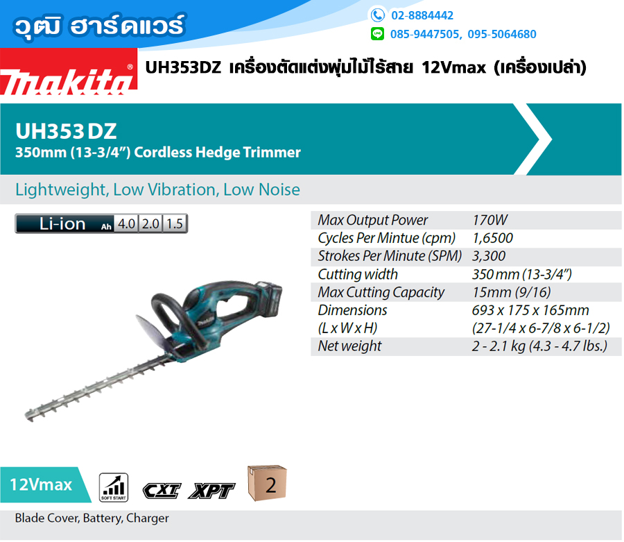 เครื่องเล็มพุ่มไม้ไร้สาย 12 โวลต์ ขนาด 350 มม. MAKITA รุ่น UH353DZ