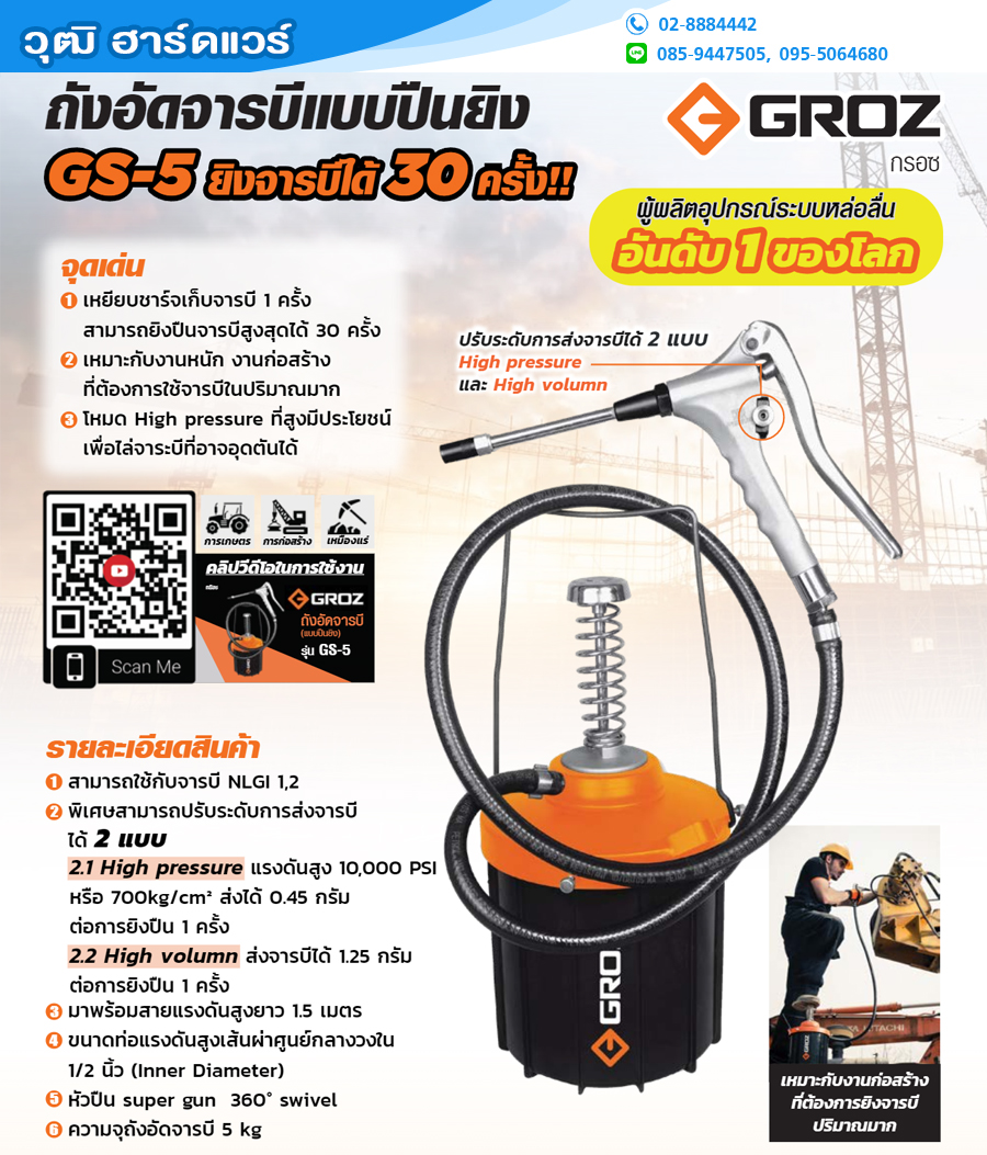 ถังอัดจาระบี GROZ รุ่น GS-5 (รุ่นงานหนัก) ความจุถังอัดจาระบี 5 กก.