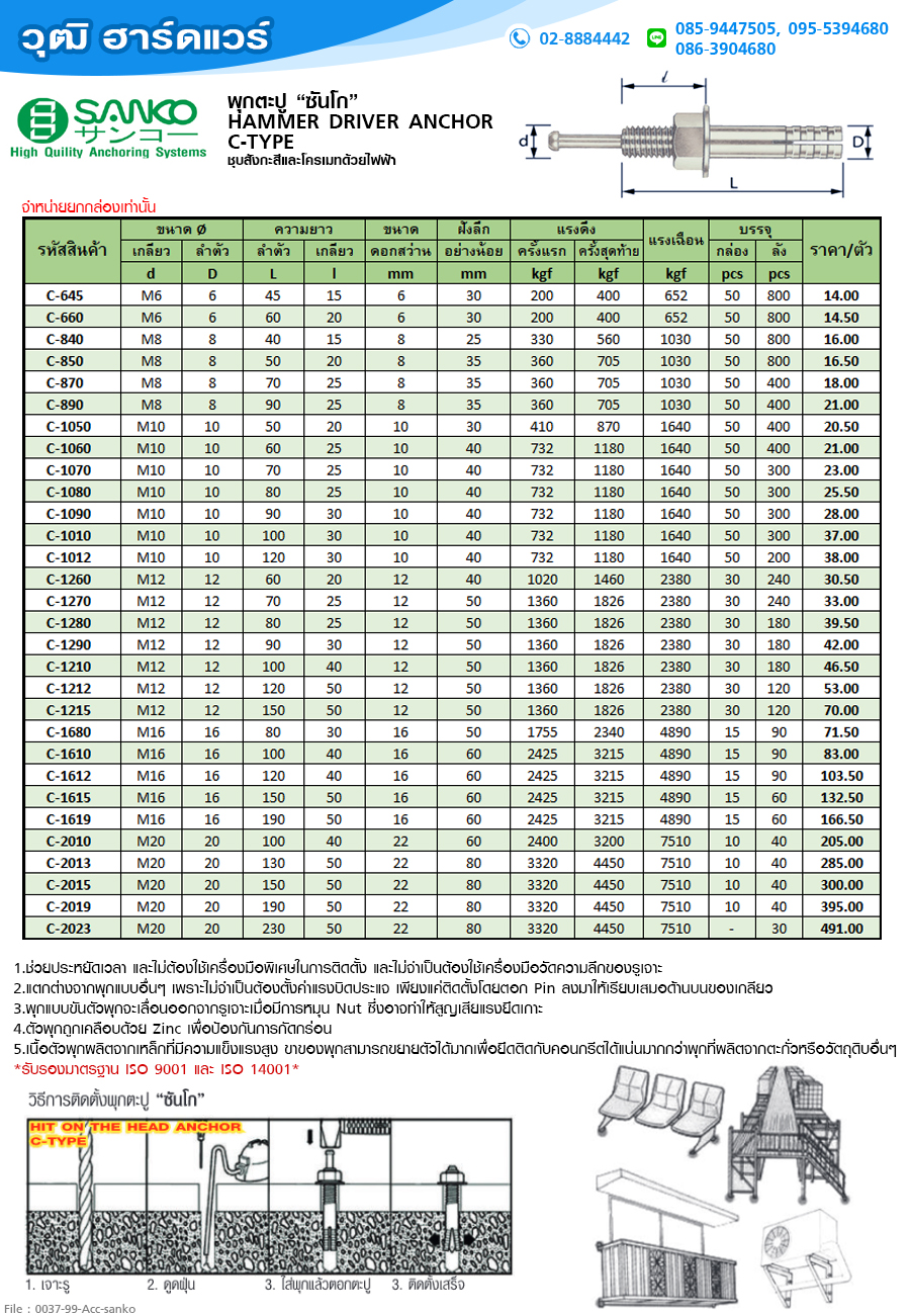 2.แตกต่างจากพุกแบบอื่นๆ เพราะไม่จำเป็นต้องตั้งค่าแรงบิดประแจ เพียงแค่ติดตั้งโดยตอก Pin ลงมาให้เรียบเสมอด้านบนของเกลียว |