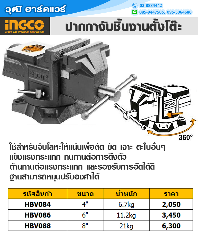 INGCO HBV086 ปากกาจับชิ้นงาน 6" พร้อมฐานหมุน |