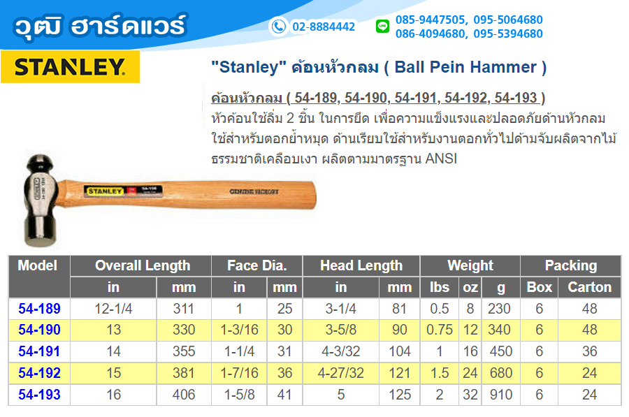 STANLEY 54-192 ค้อนหัวกลม 15" 24oz ![]()