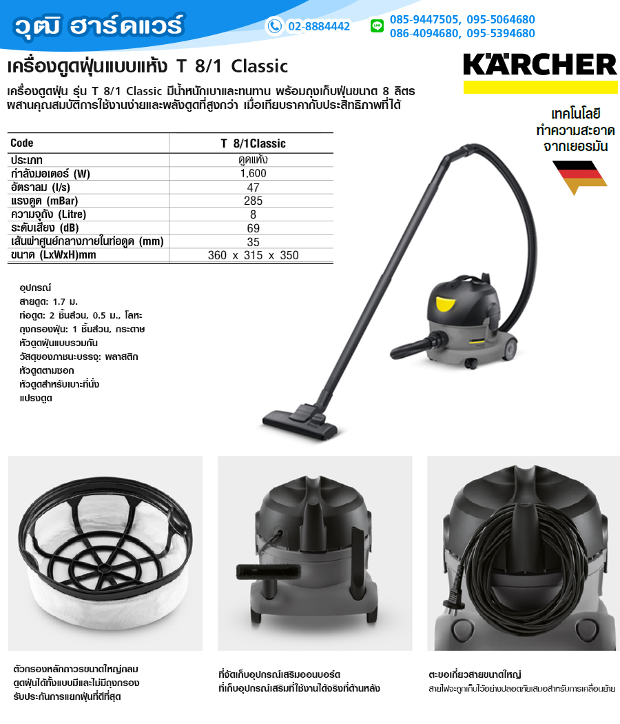 เครื่องดูดฝุ่นแบบแห้ง T-8/1 Classic