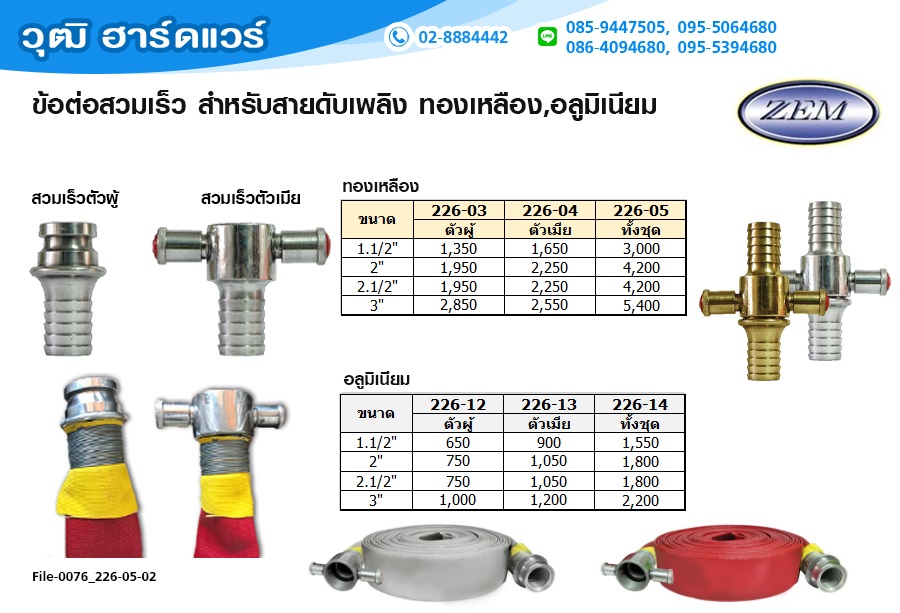 ข้อต่อสวมเร็ว สำหรับสายดับเพลิง ทองเหลือง,อลูมิเนียม