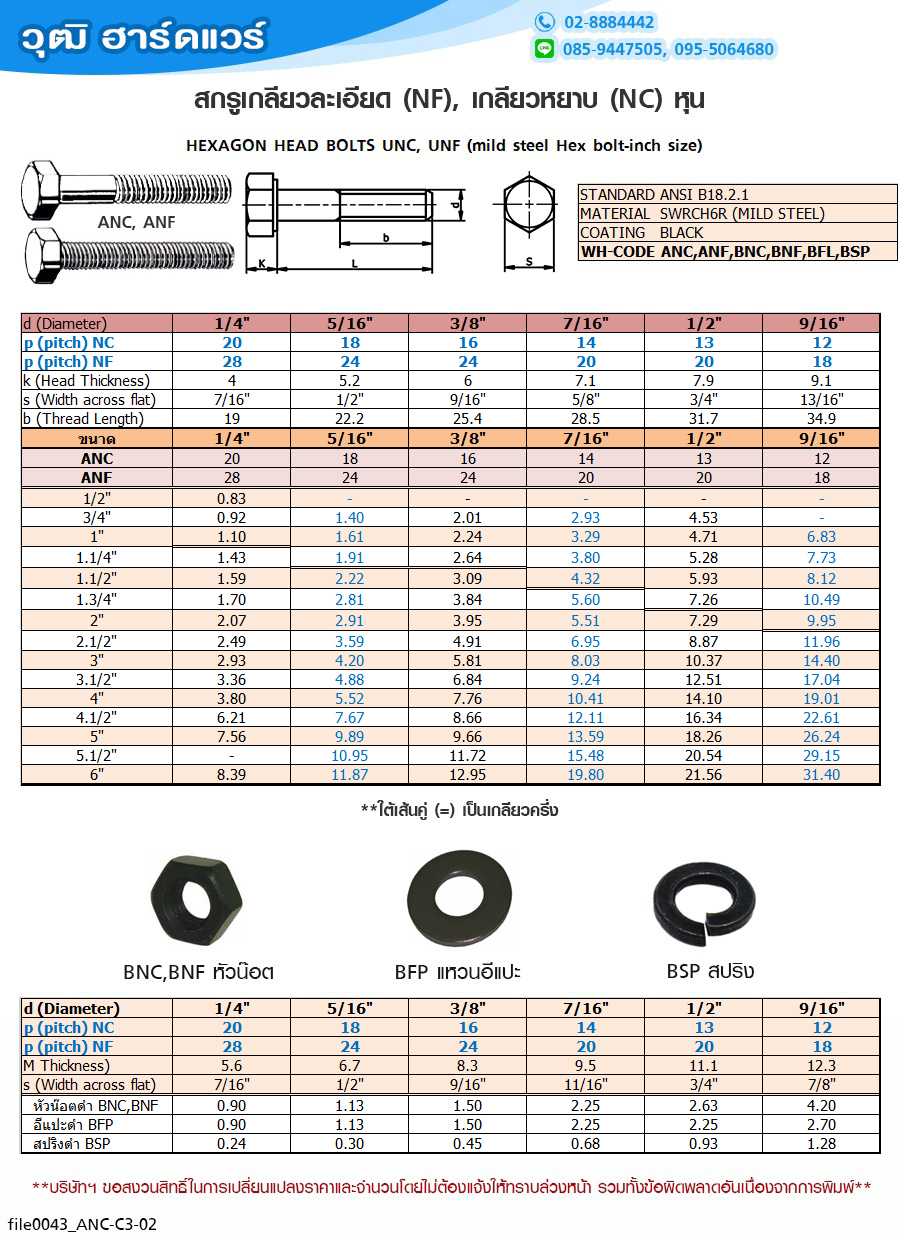 หัวน๊อตดำเกลียวละเอียด (NF) 1/2"x20.0 |