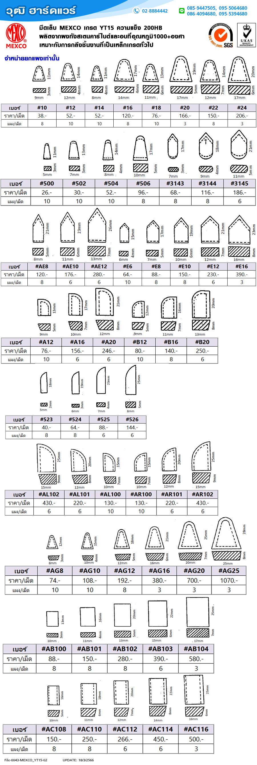 มีดเล็บ MEXCO เกรด YT15 ความแข็ง 200HB