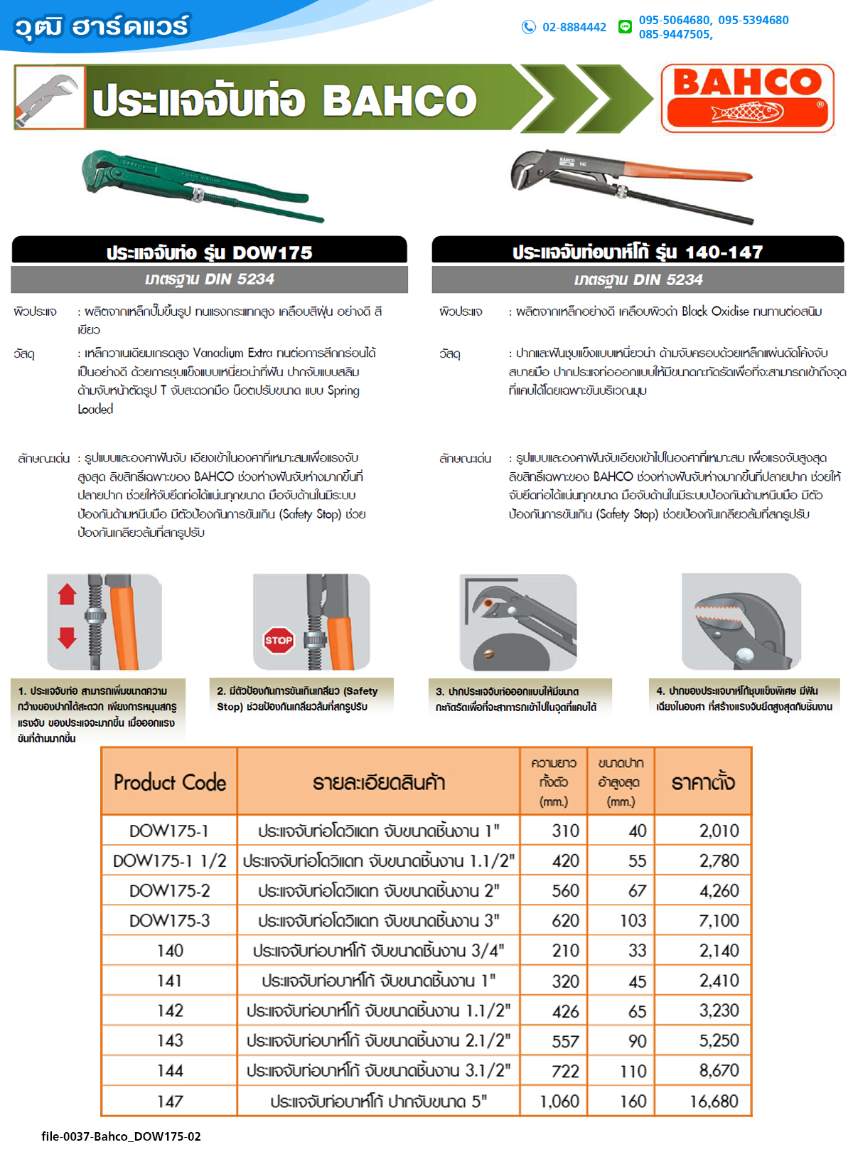 DOW175 | BAHCO DOW175 ประแจจับแป๊ปขาคู่โดวิแดท 1"-3" |