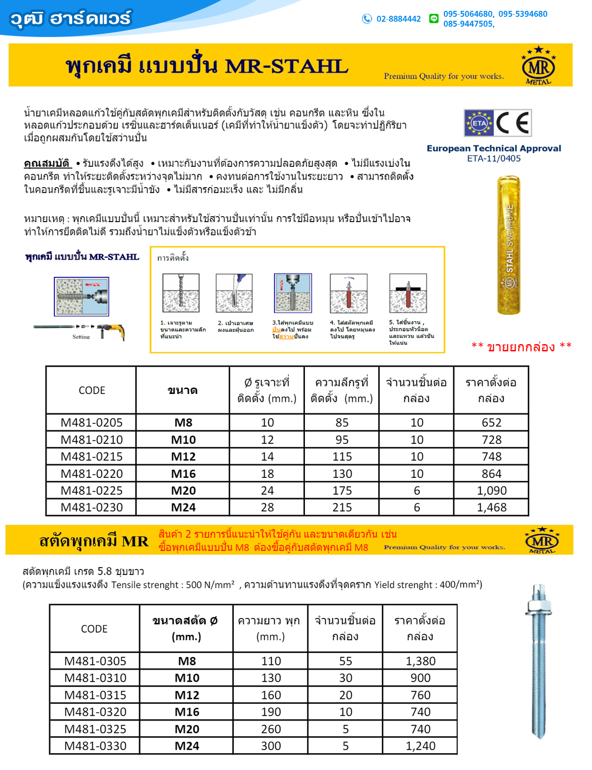 MR-STAHL พุกเคมี แบบปั่น และ สตัดพุกเคมี M8-24