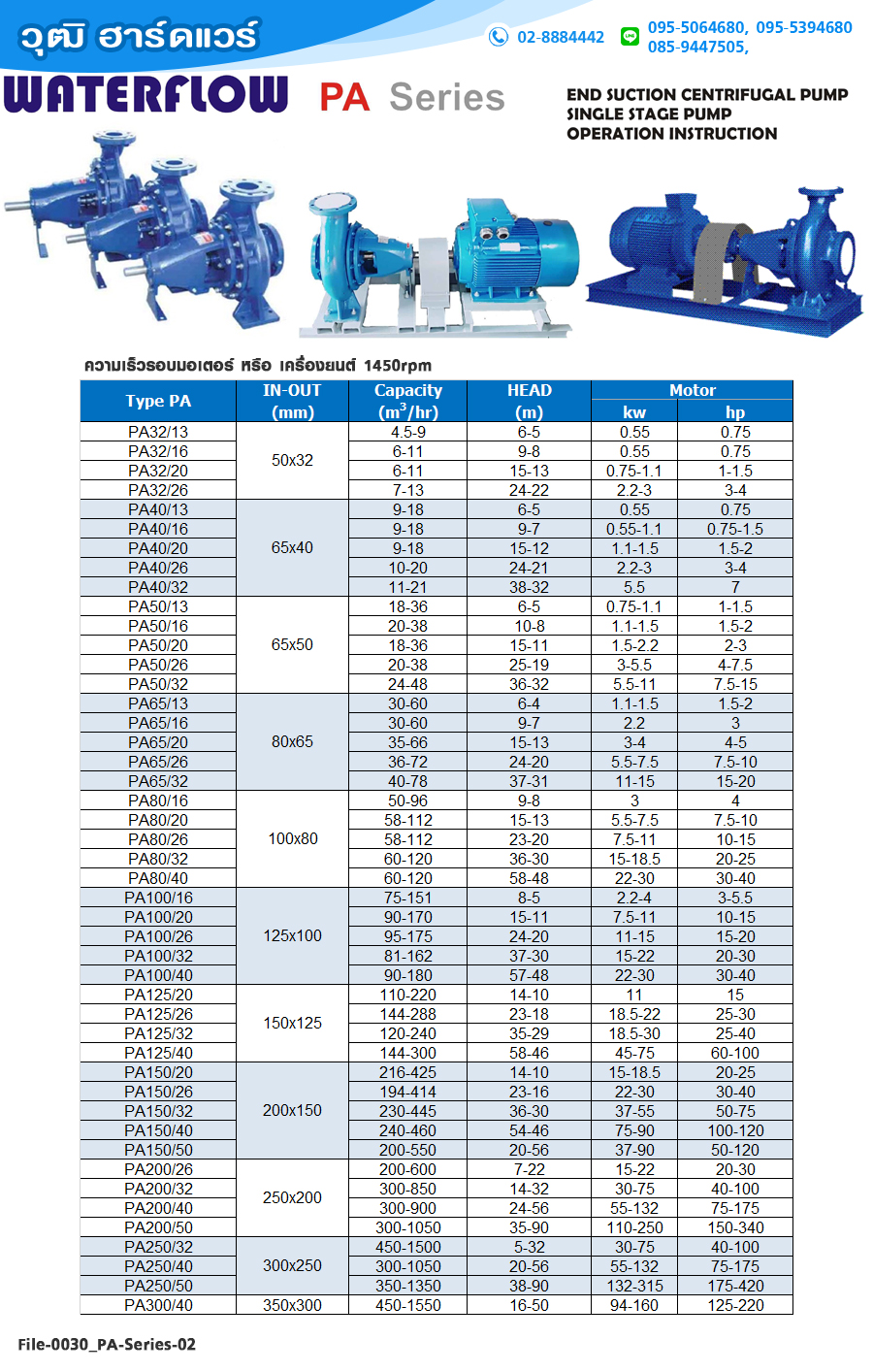 หมวดหมู่ | ปั๊มหอยโข่งไม่รวมเครื่องยนต์ |