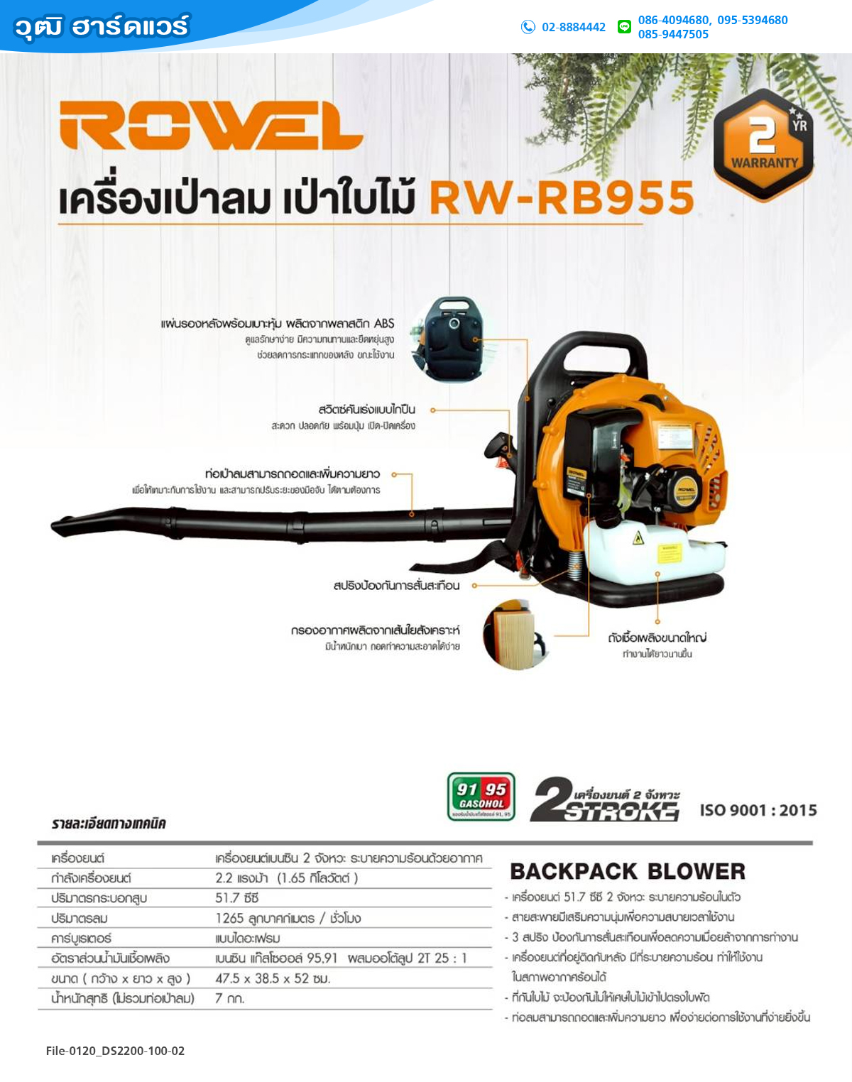 ROWEL RB955 เครื่องเป่าใบไม้ เบนซิน 2.2HP 2 จังหวะ