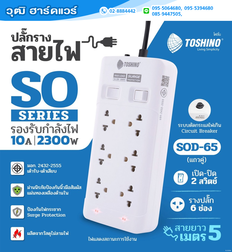 • รองรับกำลังไฟฟ้าได้ 2300 วัตต์ 10 แอมป์