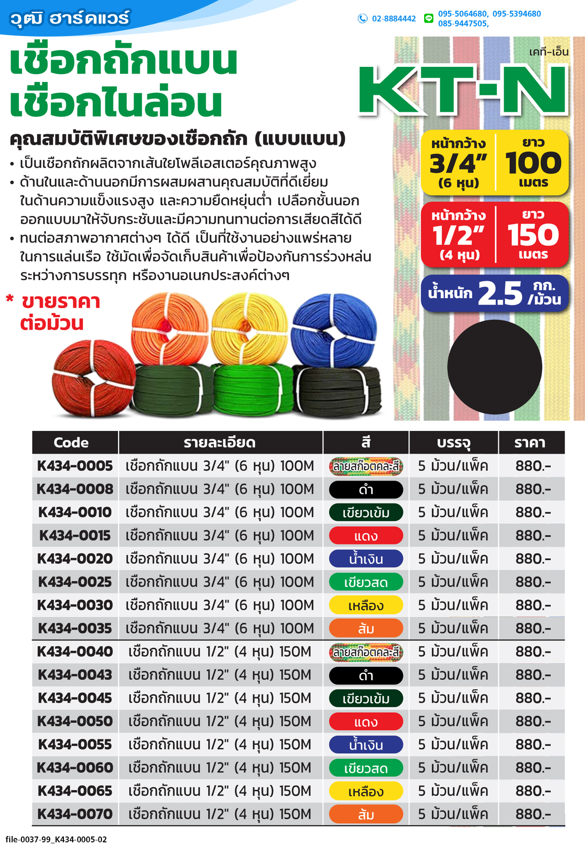 • หน้ากว้าง 3/4 นิ้ว (6 หุน) ยาว 100 เมตร