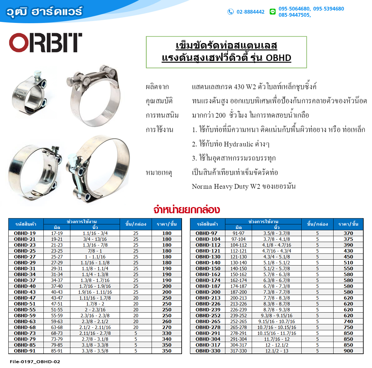 ORBIT OBHD-19 เข็มขัดรัดท่อสแตนเลสแรงดันสูง 17-19mm |