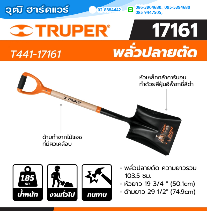 TRUPER 17161 (PCY-R) พลั่วปลายตัด 24x50cm ยาว 103.5cm