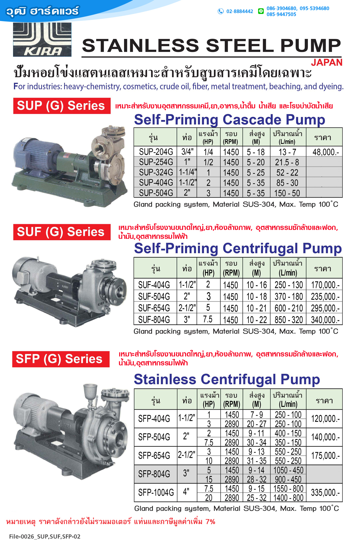 | รุ่น | SUP,SUF,SFP |