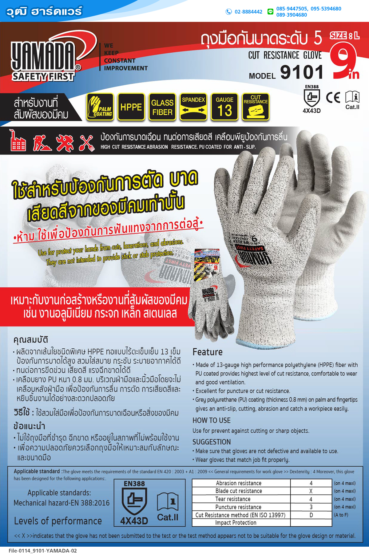 YAMADA รุ่น 9101 ถุงมือกันบาดระดับ 5 9"YAMADA รุ่น 9101 ถุงมือกันบาดระดับ 5 9"YAMADA รุ่น 9101 ถุงมือกันบาดระดับ 5 9"YAMADA รุ่น 9101 ถุงมือกันบาดระดับ 5 9"