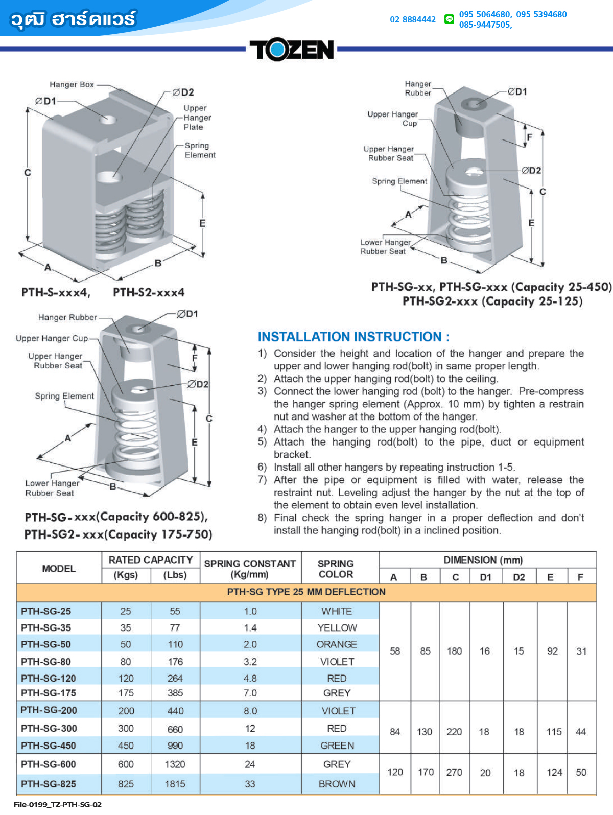 TOZEN PTH-SG สปริงแขวนและลูกยาง 25-825kg