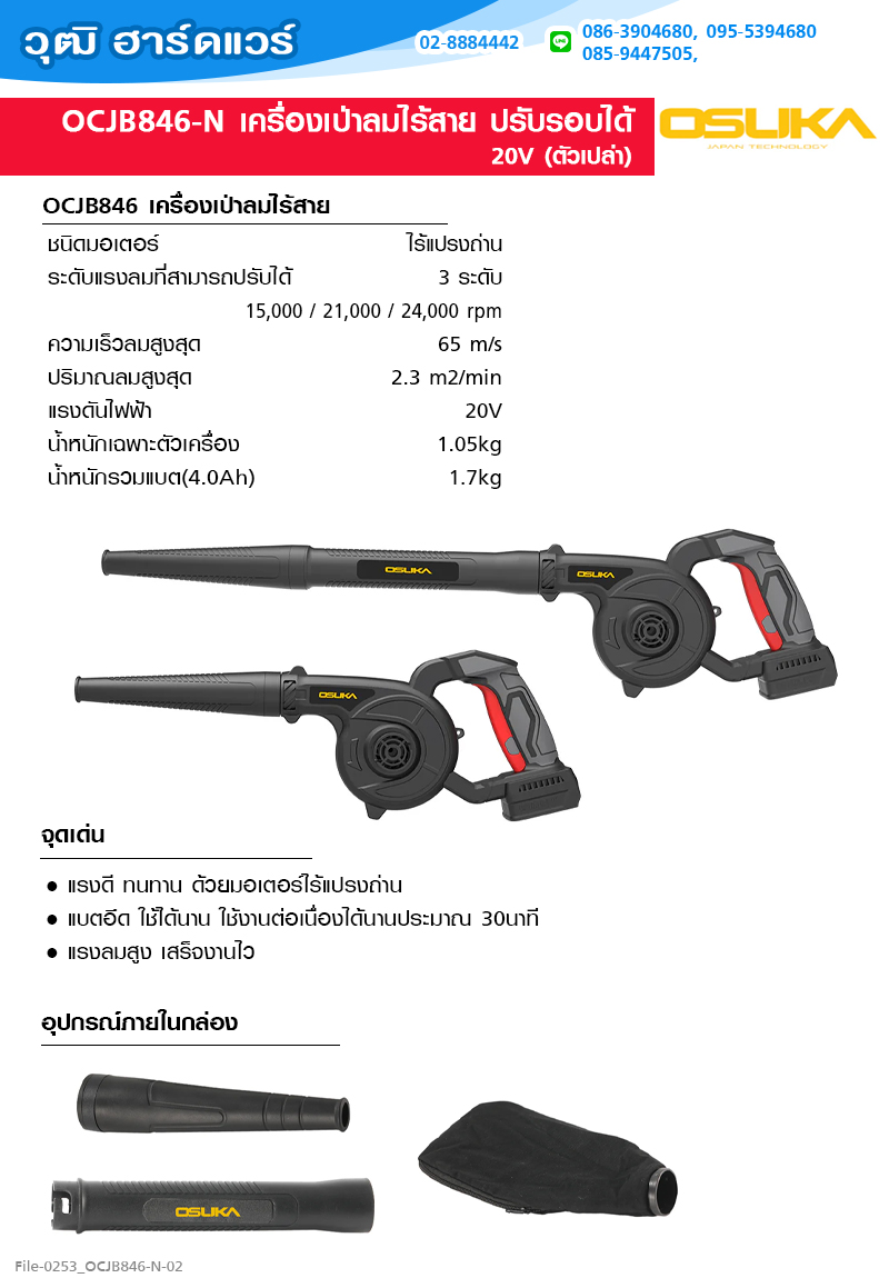 OSUKA OCJB846-N เครื่องเป่าลมไร้สาย ปรับรอบได้ 20V (ตัวเปล่า)