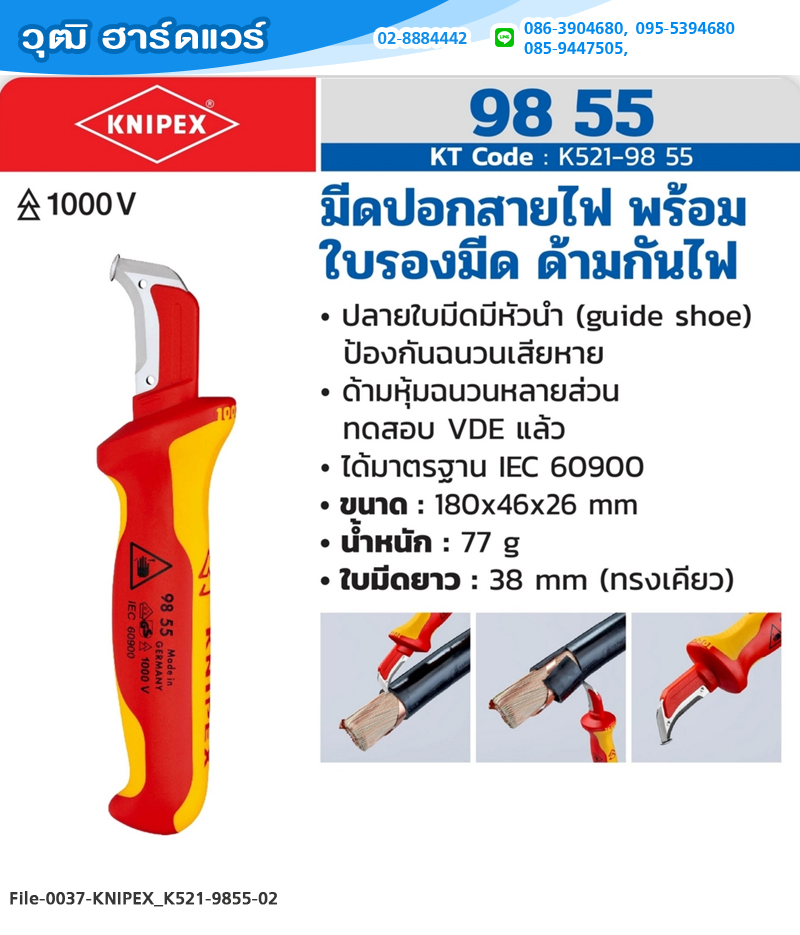 KNIPEX 98 55 มีดปอกสายไฟพร้อมใบรองมีด ด้ามกันไฟ 1000V