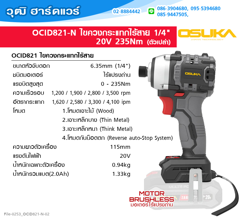 WEIGHT / น้ำหนัก (kg) รวมแบต(2.0Ah) |