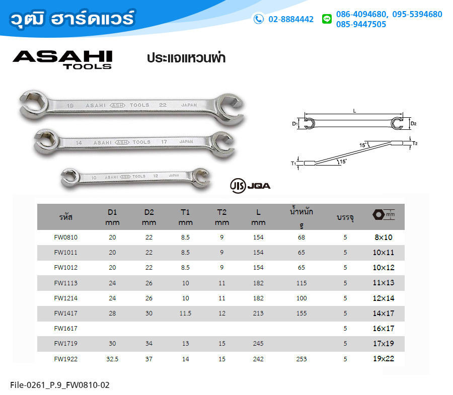 FW0810 | ASAHI FW0810 ประแจแหวนผ่า 8×10 |