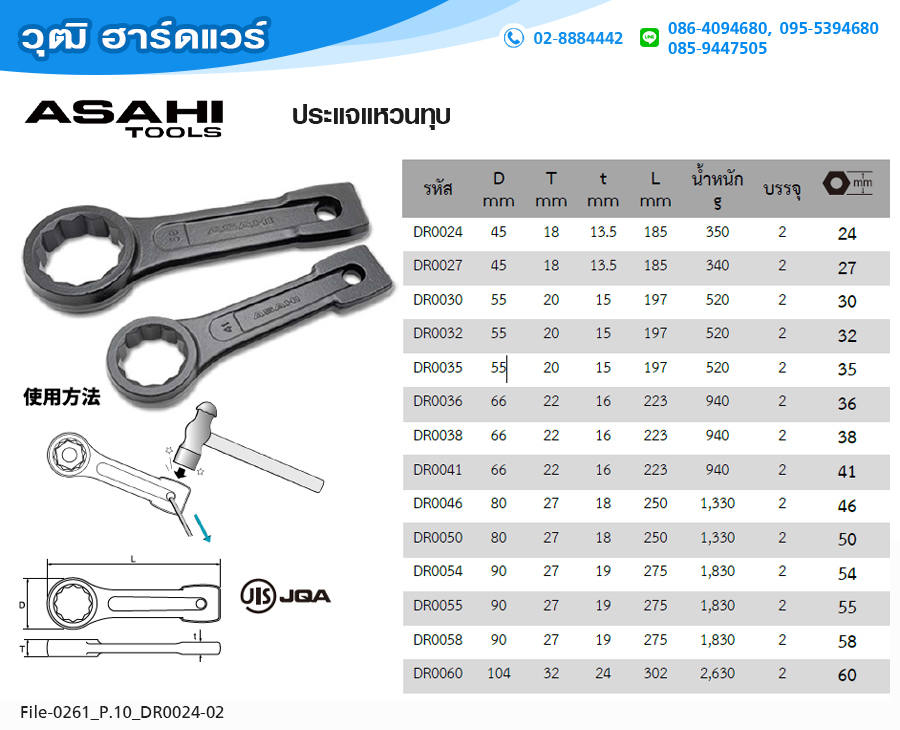 ASAHI DR0024 ประแจแหวนทุบ M24 |