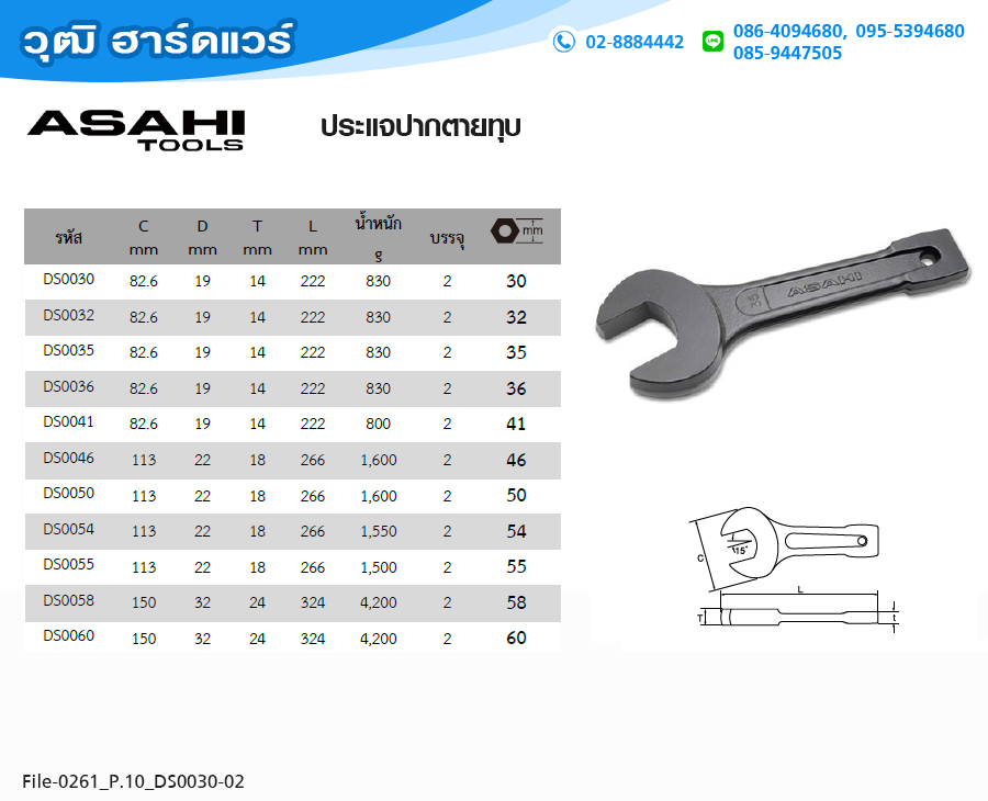 ASAHI DS0030 ประแจปากตายทุบ M30 |