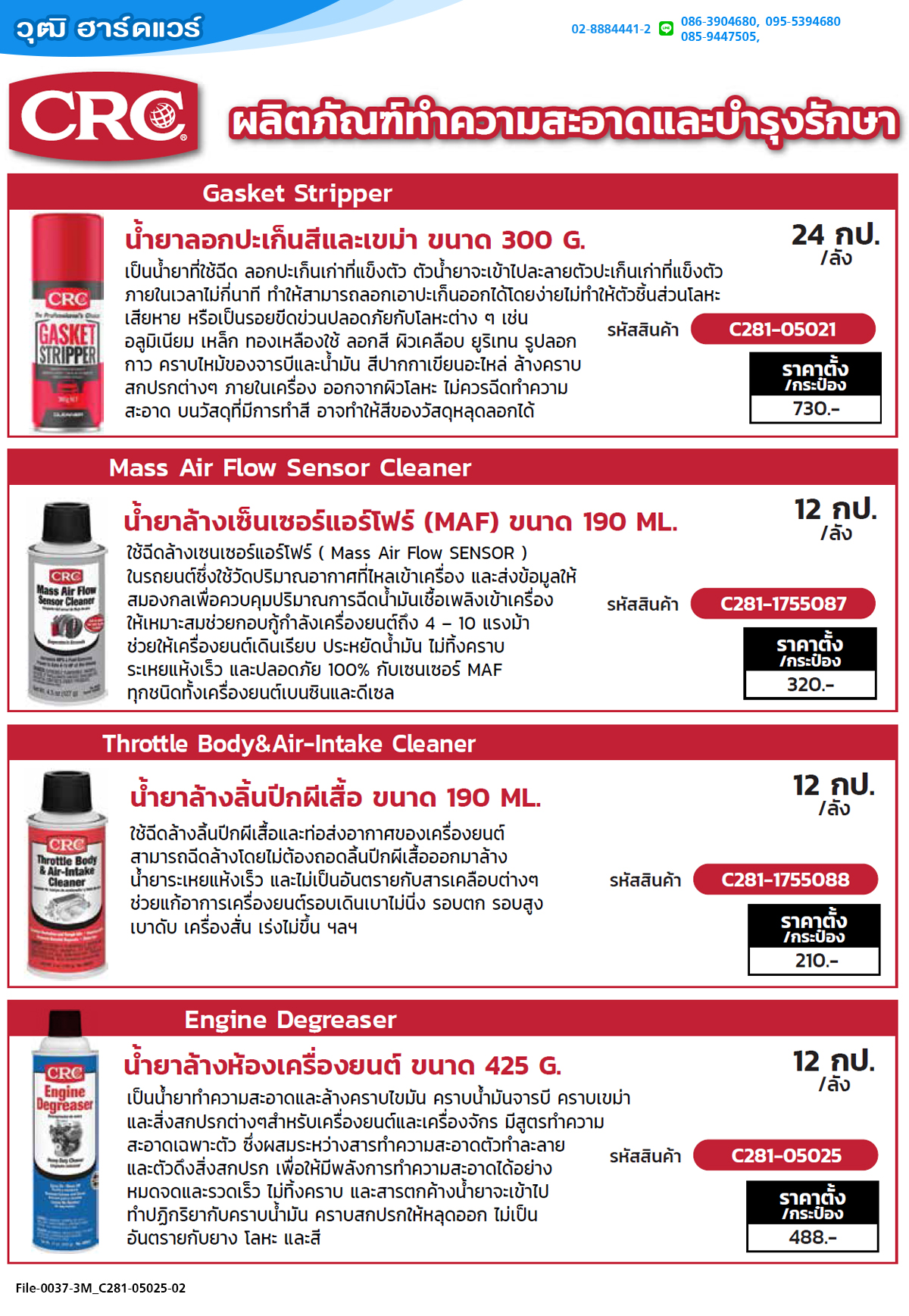 ใช้ฉีดล้างเซนเซอร์แอร์โฟร์ (Mass Air Flow SENSOR) ในรถยนต์ (ซีอาร์ซี)