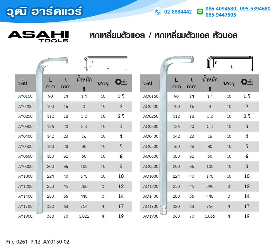 ASAHI AY0150 หกเหลี่ยมตัวแอล M1.5-M19