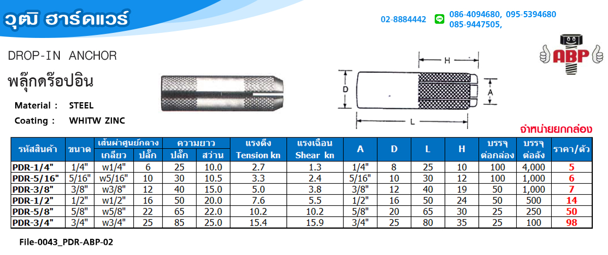 PDR-3/8" | ABP พุกดร็อปอิน 3/8" (50ตัว/กล่อง) |