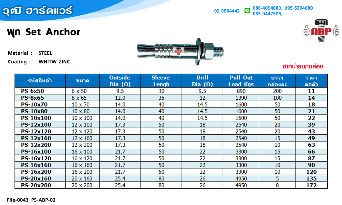 ABP พุก Set Anchor M10x80 (50ตัว/กล่อง) |