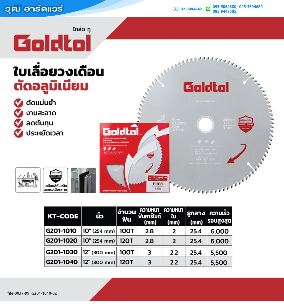 | G201-1010 | Goldtol ใบเลื่อยวงเดือน ตัดอลูมิเนียม 10"x100T | 1,060 |