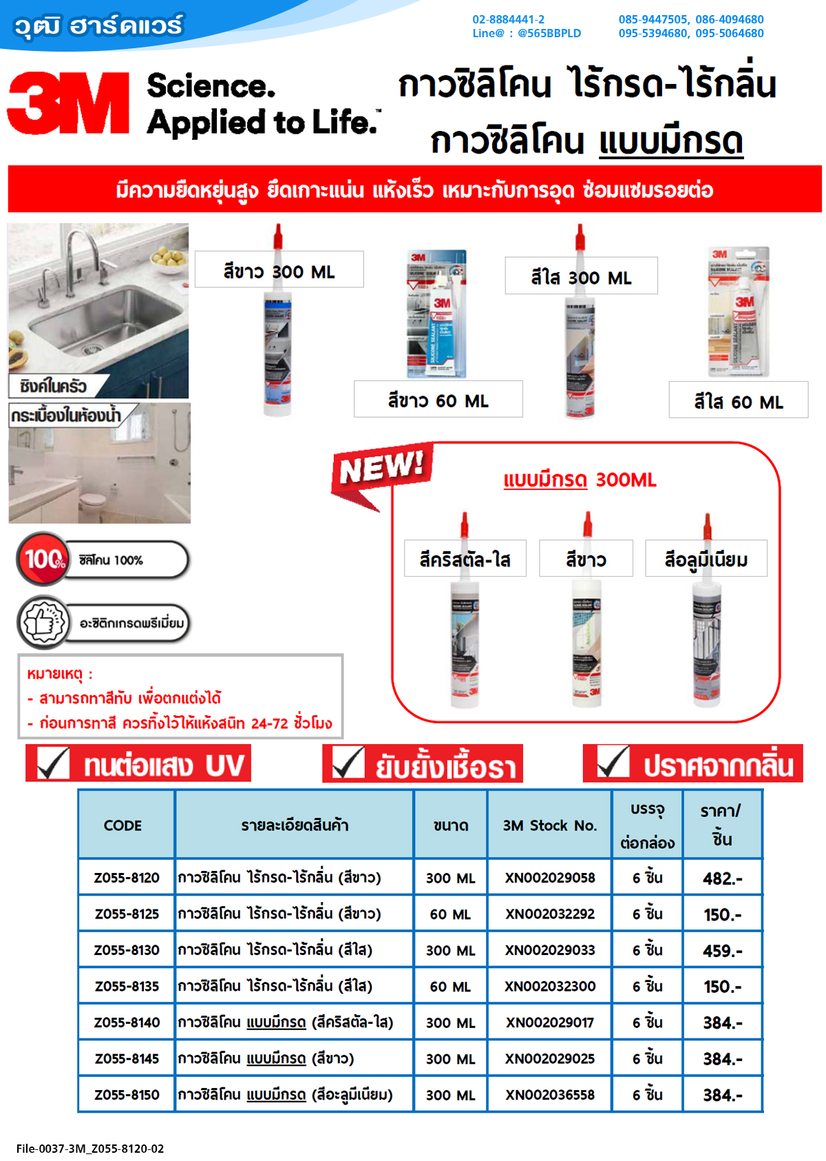 ยึดเกาะแน่น แห้งเร็ว เหมาะกับการอุด ซ่อมแซมรอยต่อ (3 เอ็ม)