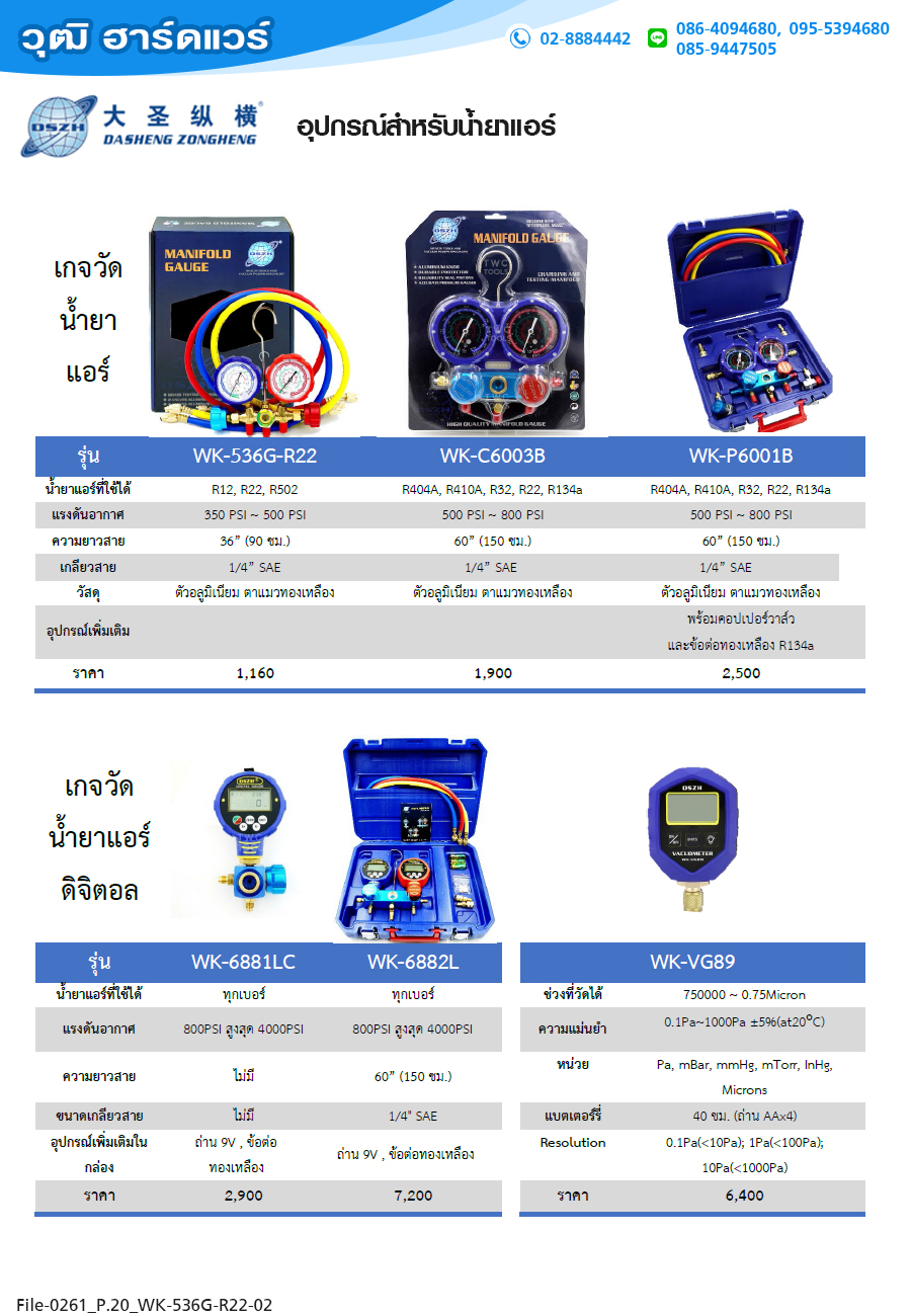 | • ใช้กับน้ำยา R404A, R410A, R32, R22, R134a |