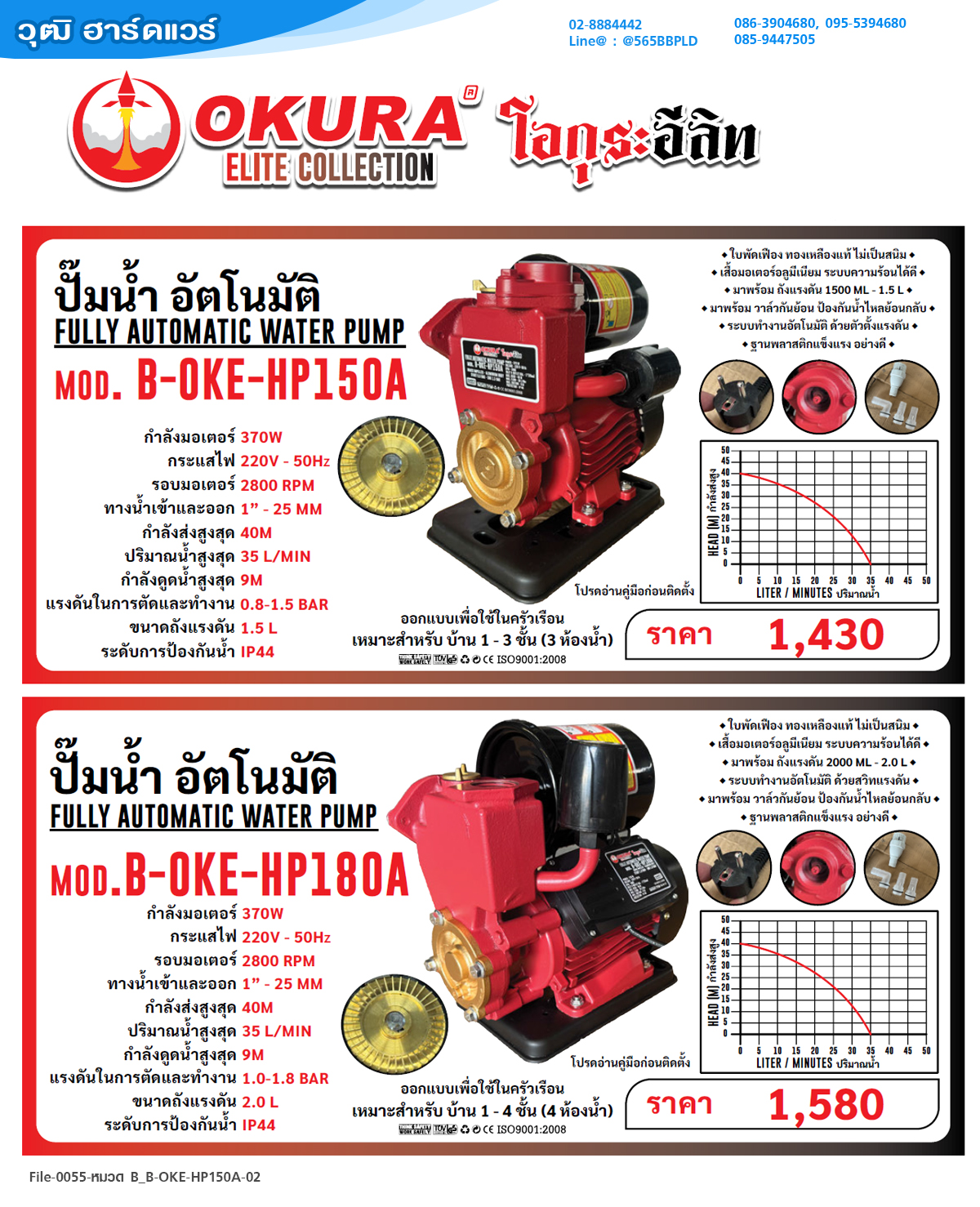 OKURA B-OKE-HP150A ปั๊มน้ำอัตโนมัติ 1" 370W
