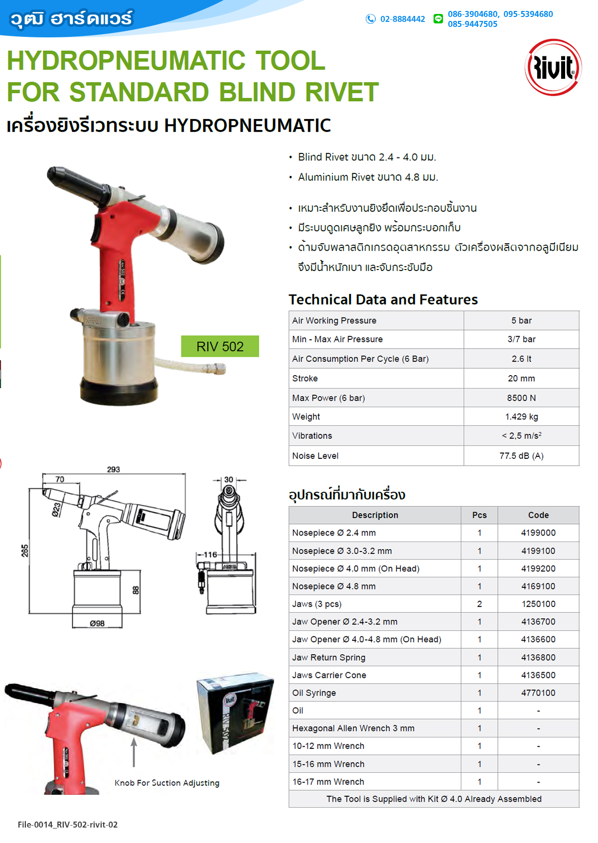 เครื่องยิงรีเวทระบบไฮดรอนิวเมติกส์ RIVIT รุ่น RIV502 |