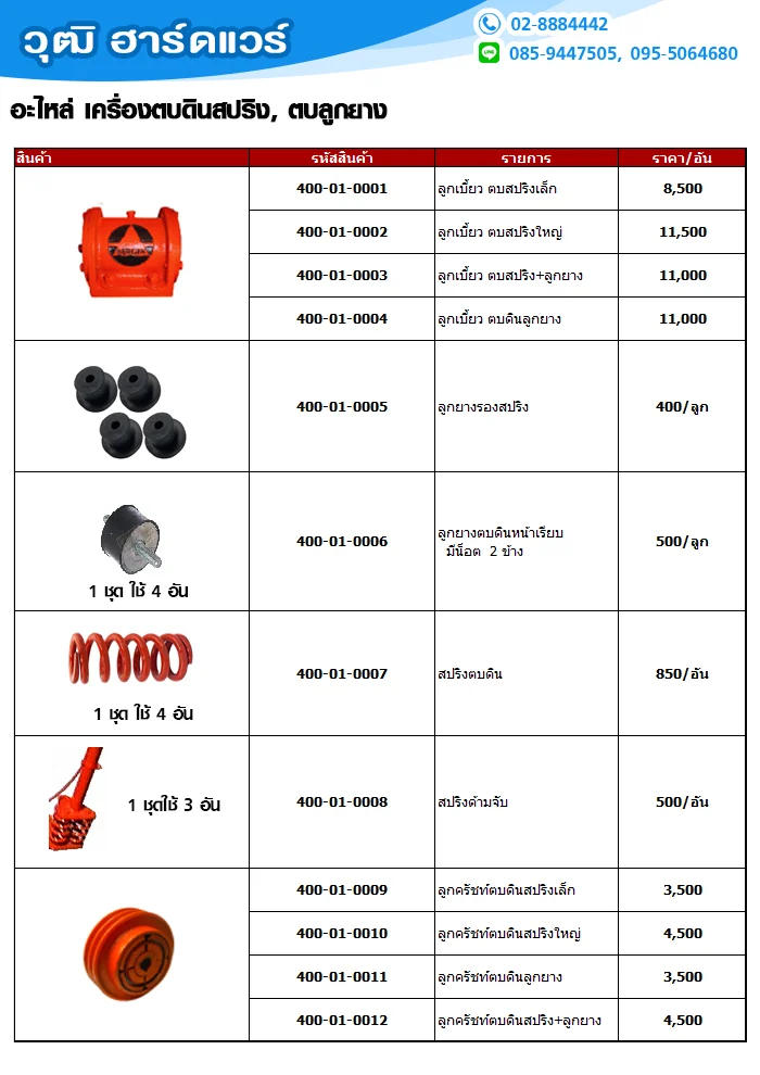 | 400-01-0012 | ลูกครัชท์ตบดินสปริง+ลูกยาง | 4,500 |