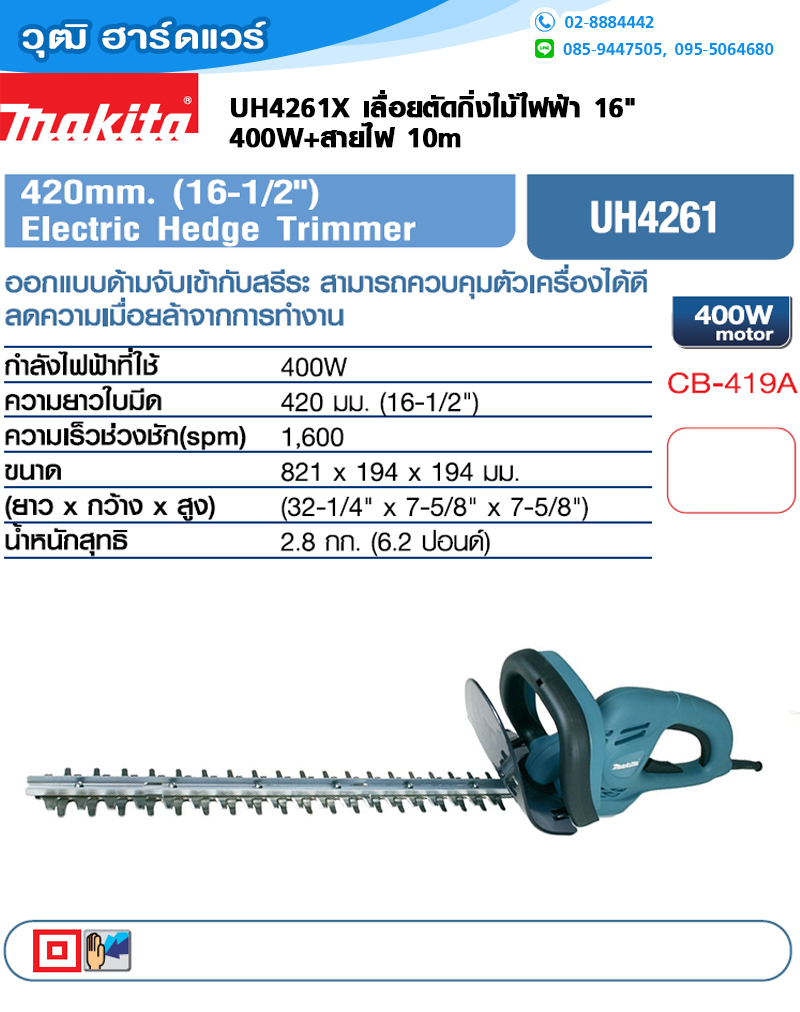 MAKITA UH4261X เลื่อยตัดกิ่งไม้ไฟฟ้า 16" 400W+สายไฟ 10mMAKITA UH4261X เลื่อยตัดกิ่งไม้ไฟฟ้า 16" 400W+สายไฟ 10m