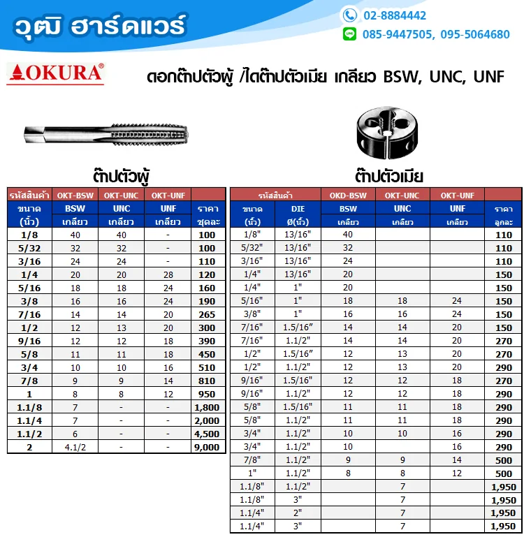 OKURA ไดต๊าปตัวเมีย เกลียว BSW 7/8" |