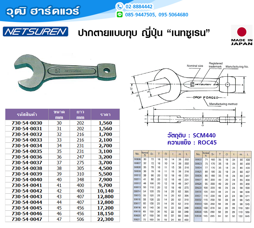 วัตุดิบ : SCM440, ความแข็ง : ROC45 (Japan) | |||