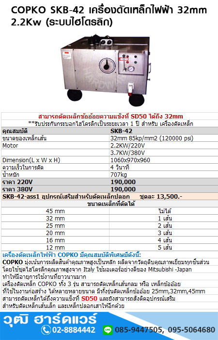 สามารถดัดเหล็กข้ออ้อยความแข็งที่ SD50 ได้ถึง 32mm |